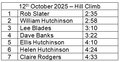 Hill Climb – 12th October- Hob Hill